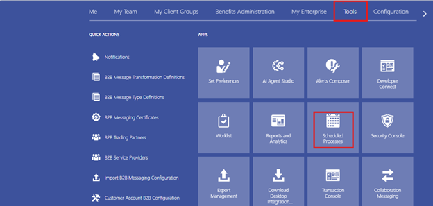 - Navigate to Tools → Scheduled Processes.