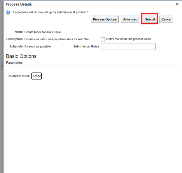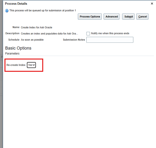 2. Schedule the process Create Index for Ask Oracle