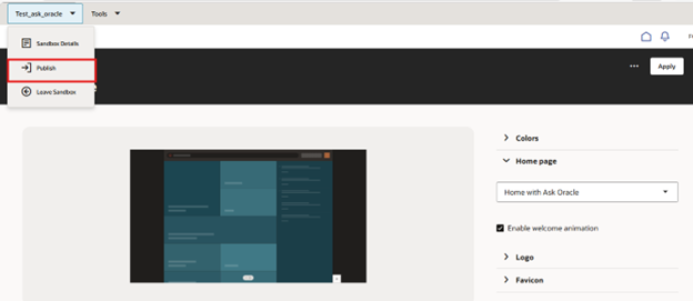 After publishing, the Home with Ask Oracle interface becomes available to all users.