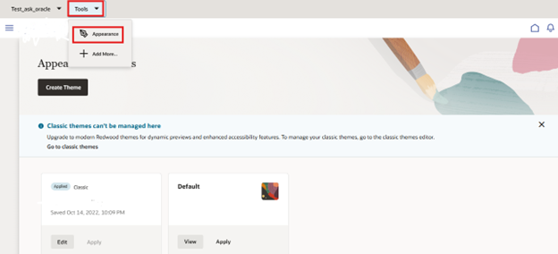 - Navigate to Tools → Appearance.