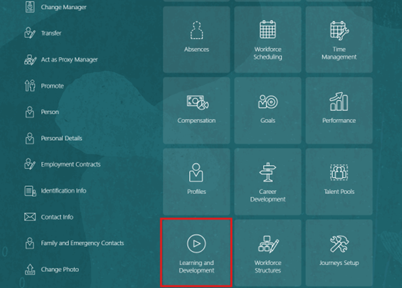 This work area provides access to all learning configuration and administration capabilities.