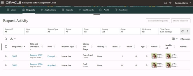 - A user submits a request in Oracle EDM.