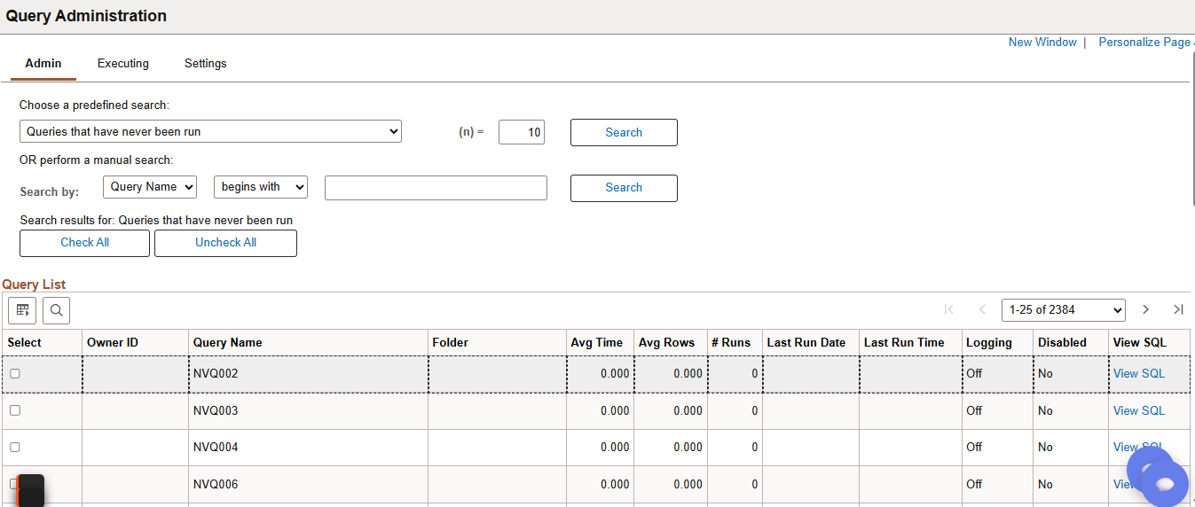 In many organizations, hundreds or even thousands of queries are created over time. Some of these queries may run frequently or may not be optimized properly, which can impact system performance. The Query Administration component helps administrators track these queries and take necessary actions when needed.
