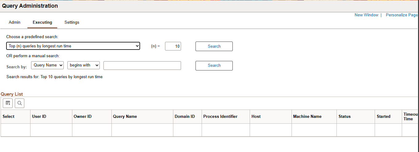 Information about executing queries is stored in the PSQRYTRANS table. When a query finishes or is terminated, PeopleTools automatically cleans up any orphaned records associated with that query.