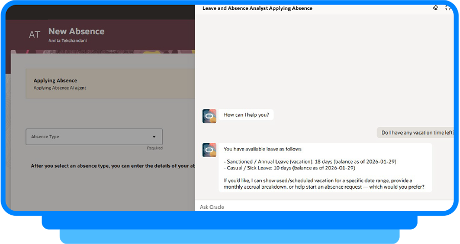 Oracle AI is a native intelligence built directly into Oracle Cloud, transforming enterprise data into real-time insights and everyday work into automated advantages.